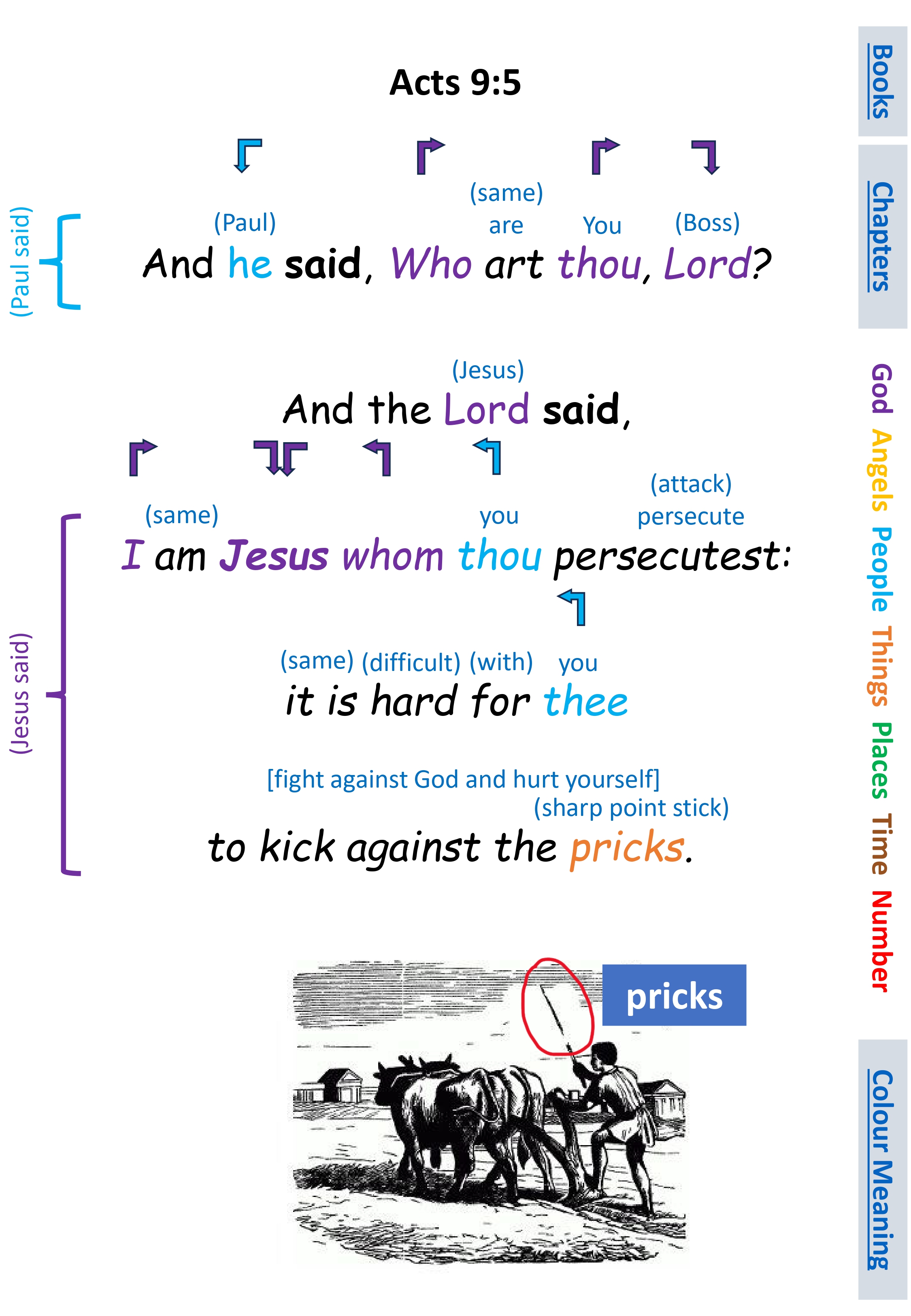 Act 9:5 And he said, Who art thou, Lord? And the Lord said, I am Jesus whom thou persecutest: it is hard for thee to kick against the pricks.