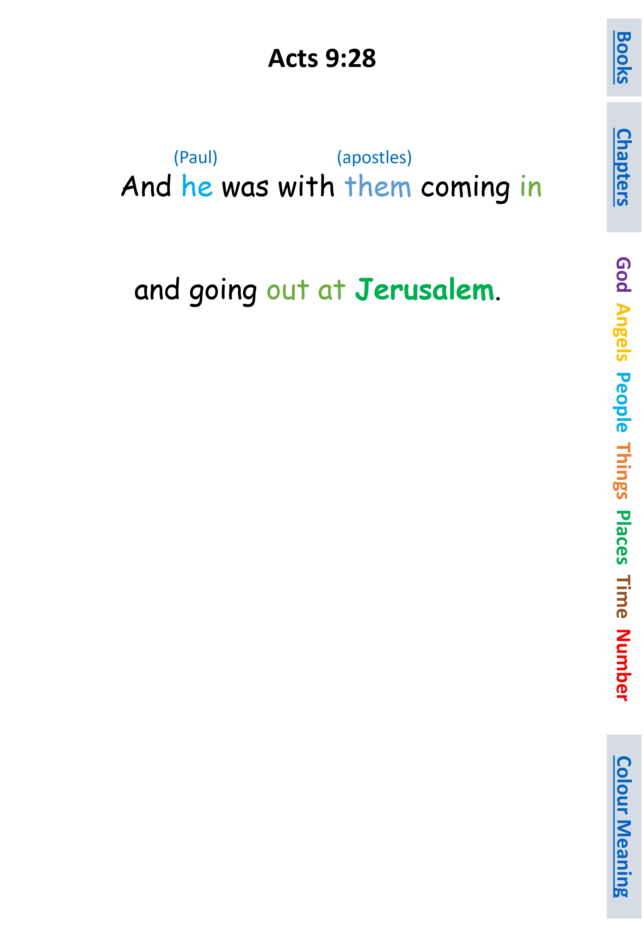 Act 9:28 And he was with them coming in and going out at Jerusalem.