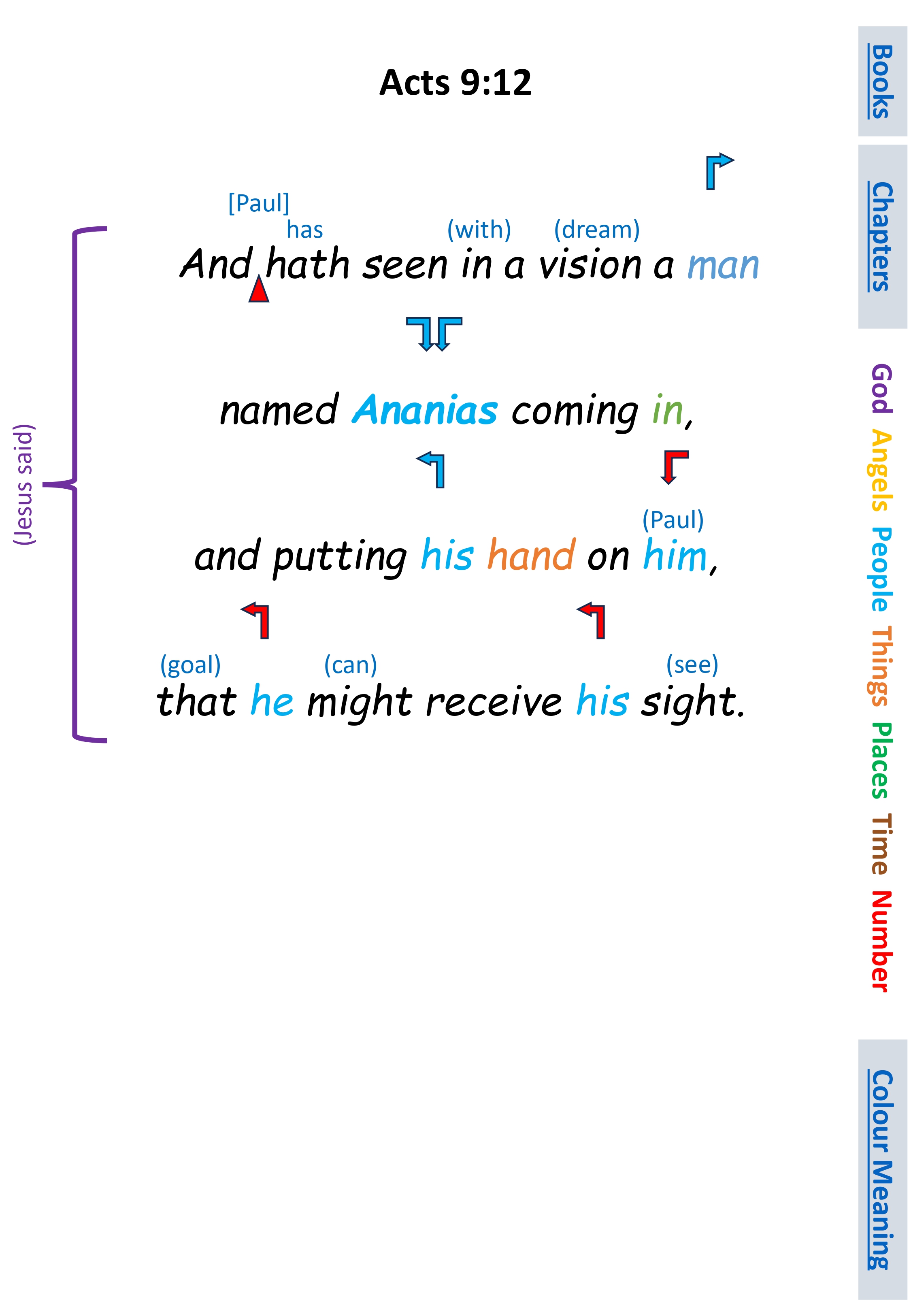 Act 9:12 And hath seen in a vision a man named Ananias coming in, and putting his hand on him, that he might receive his sight.