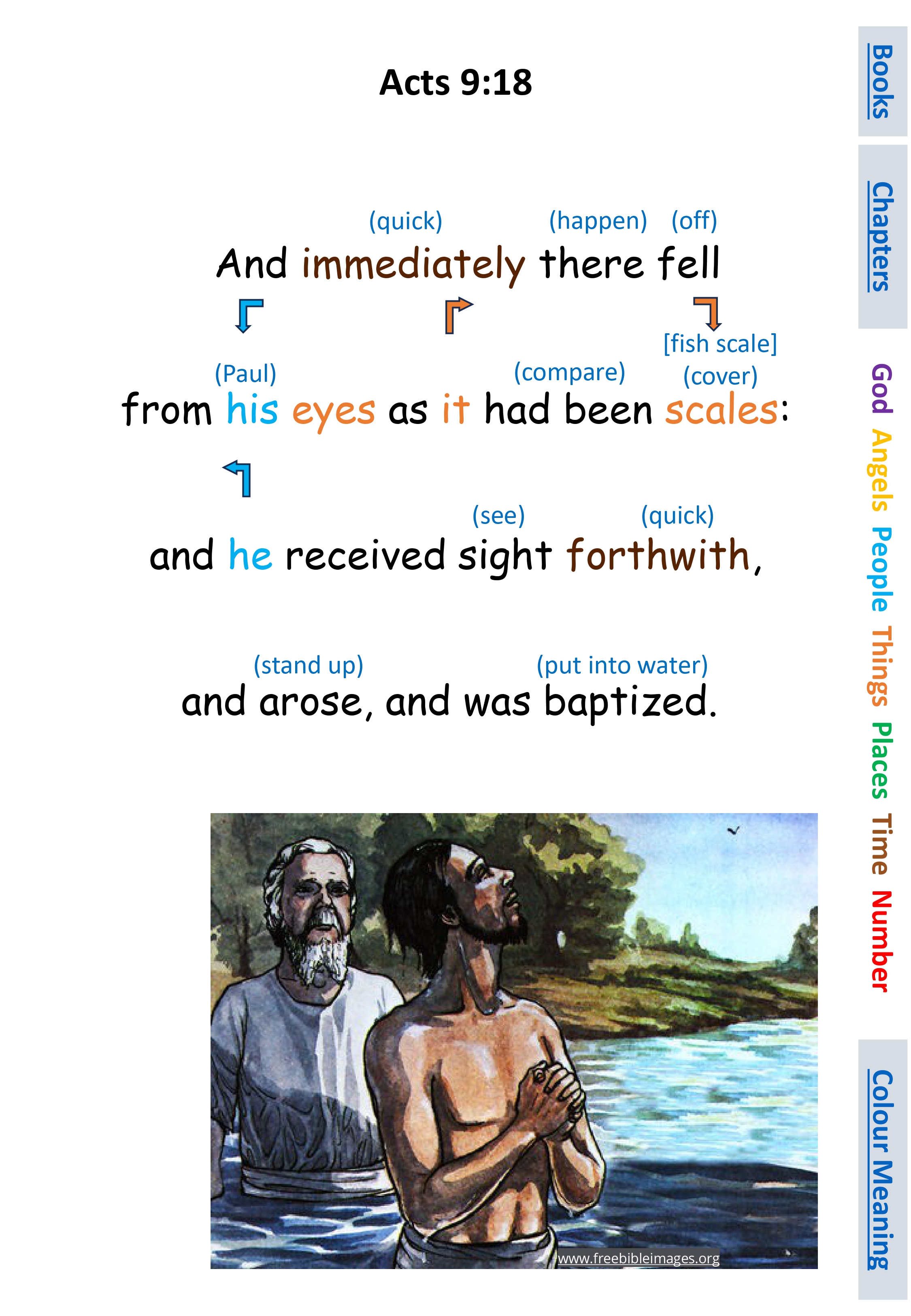 Act 9:18 And immediately there fell from his eyes as it had been scales: and he received sight forthwith, and arose, and was baptized.