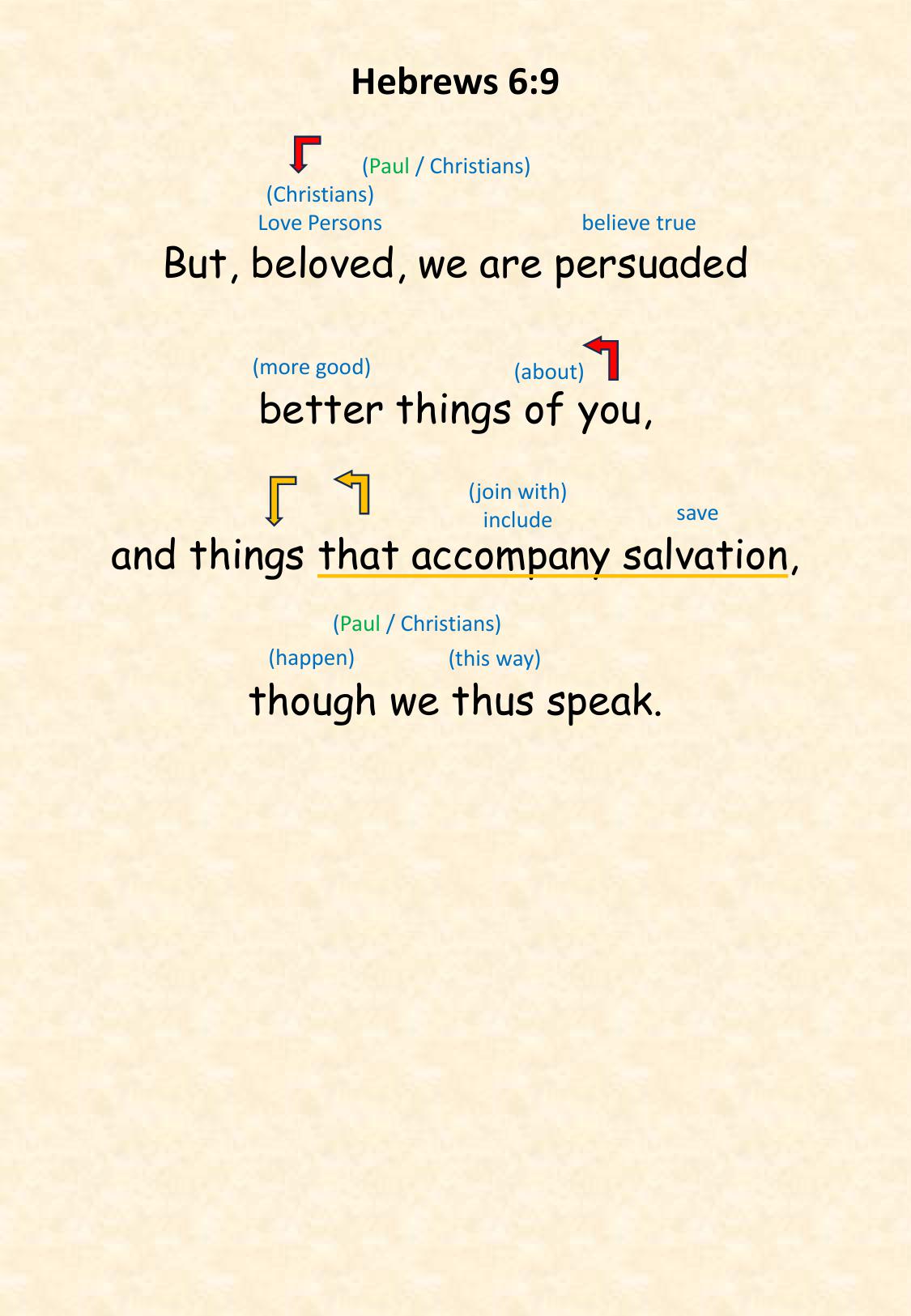 Heb 6:9 But, beloved, we are persuaded better things of you, and things that accompany salvation, though we thus speak.