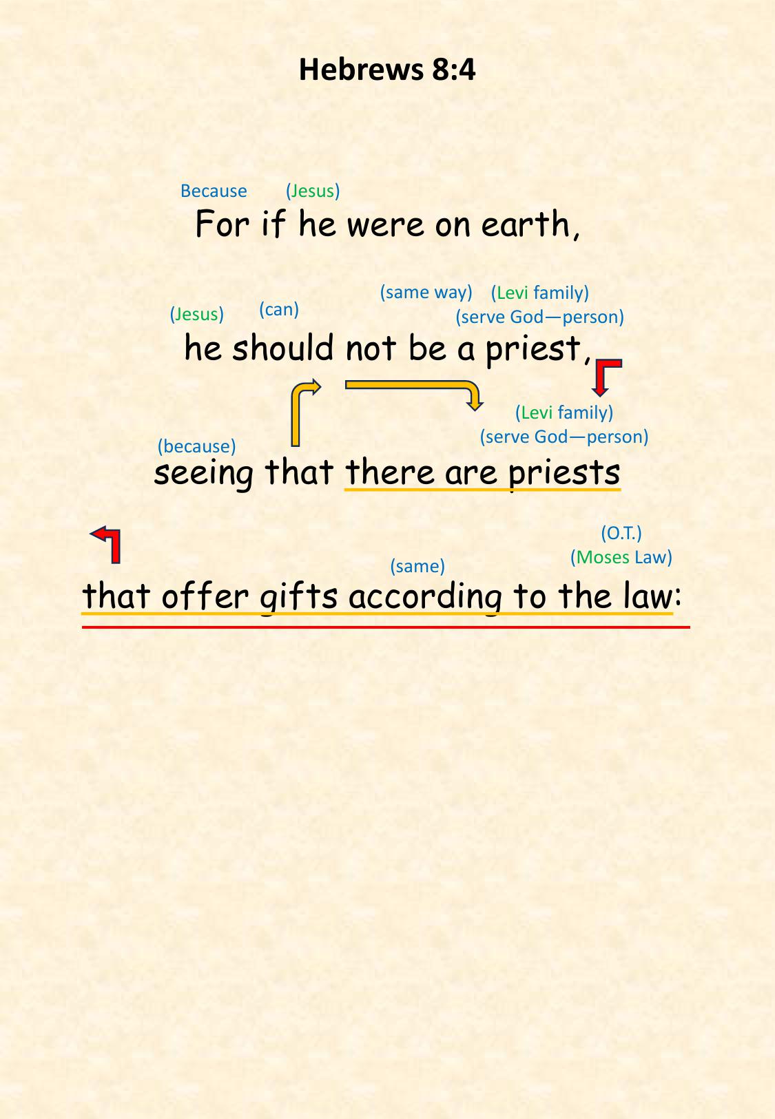 Heb 8:4 For if he were on earth, he should not be a priest, seeing that there are priests that offer gifts according to the law: