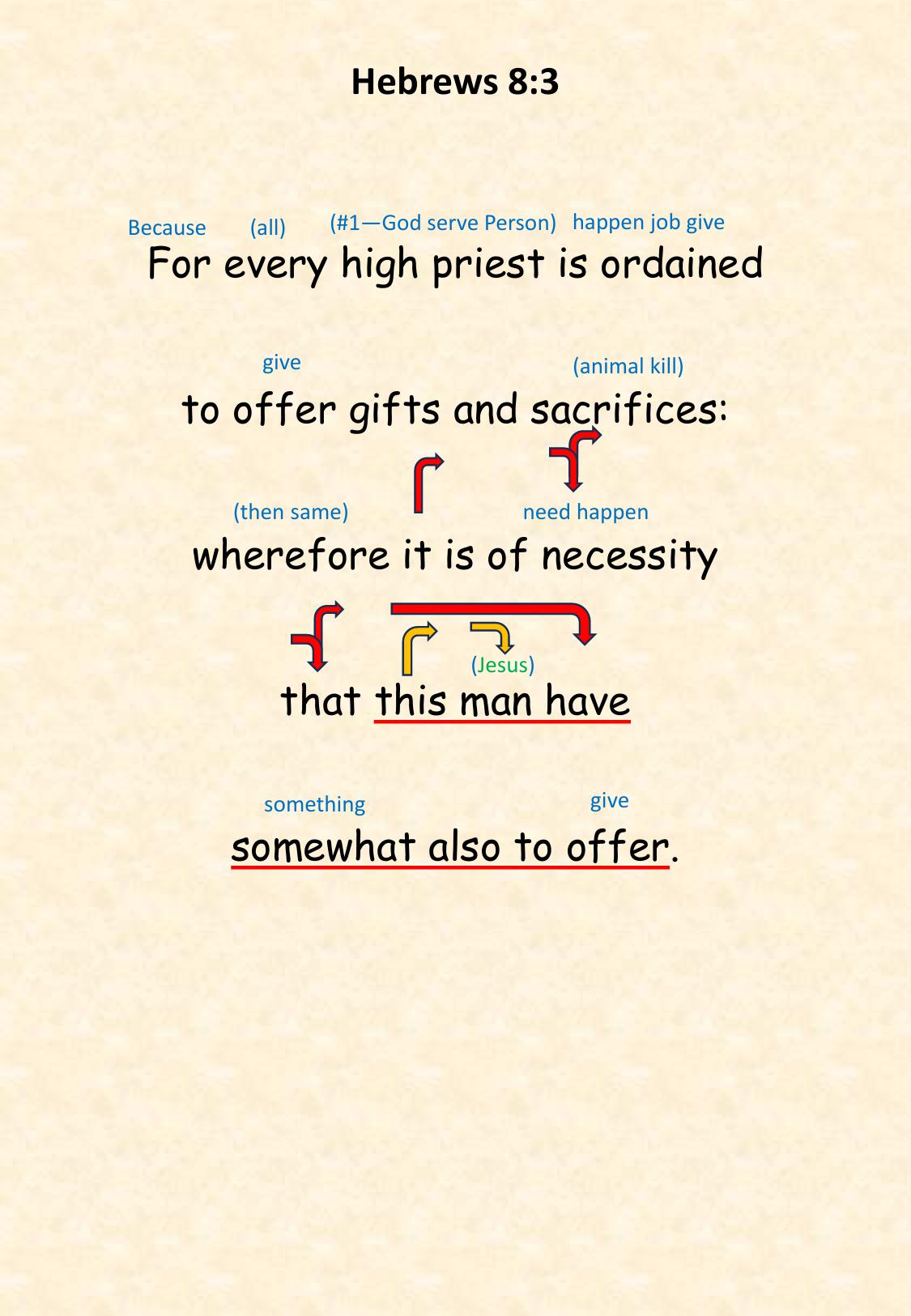 Heb 8:3 For every high priest is ordained to offer gifts and sacrifices: wherefore it is of necessity that this man have somewhat also to offer.