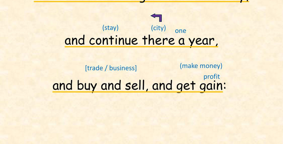 Jas 4:13 Go to now, ye that say, To day or to morrow we will go into such a city, and continue there a year, and buy and sell, and get gain: